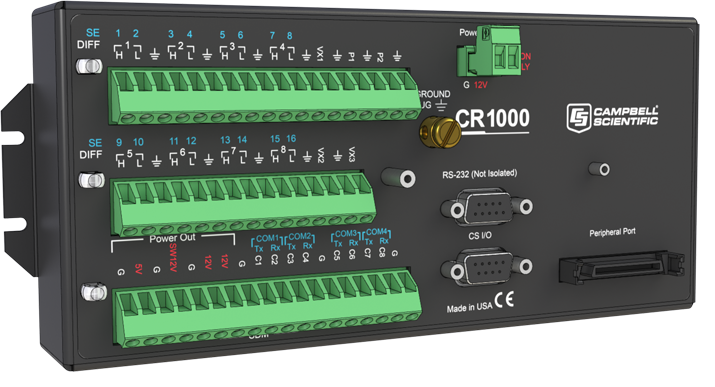 OverviewThe CR1000 is our most widely used datalogger. It can be used in a broad range of measurement and control functions. Rugged enough for extreme conditions and reliable enough for remote environments, it is also robust enough for complex configurations. The CR1000 builds on the foundation of our CR10X dataloggers, and has already been put to use all over the world. Increased memory and more measurement channels make it a powerful core component for your data-acquisition system. Benefits and Features